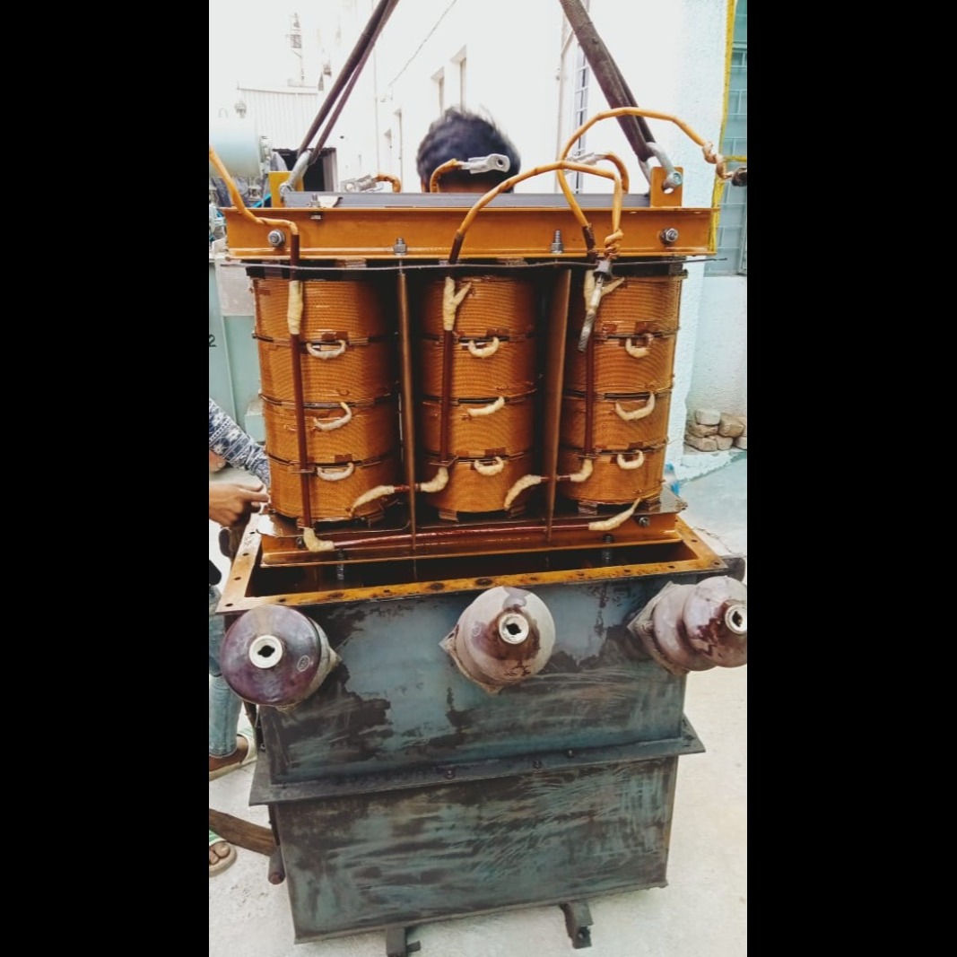 Rewinding of a transformer core coil involves replacing or repairing the damaged or aged windings in the transformer’s core. This process is typically done when the insulation fails, the windings are burnt, or performance deteriorates. The transformer is first safely disconnected and dismantled. The old coil windings are carefully removed, and the core is cleaned and inspected. New windings, made from copper or aluminum wire with proper insulation, are wound precisely to match original specifications. After rewinding, insulation resistance and other electrical tests are conducted. Proper rewinding restores the transformer's functionality, extends its lifespan, and ensures efficient and safe operation.